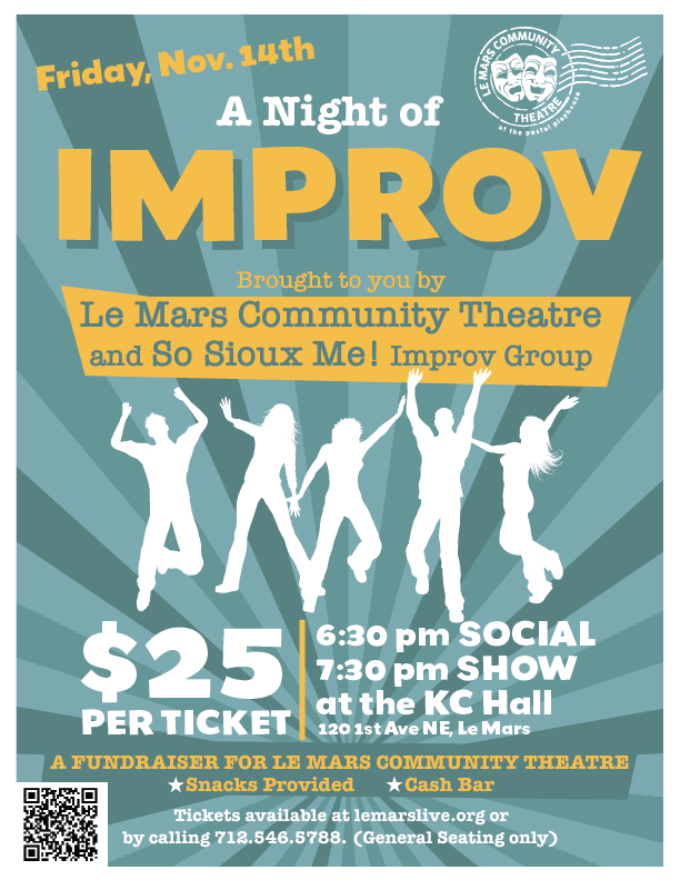 LCT is excited to bring you a special night of improv comedy! On Friday, November 14, we’ll be teaming up with the talented troupe So Sioux Me! from Sioux Center for a two-act improv performance at the KC Hall.